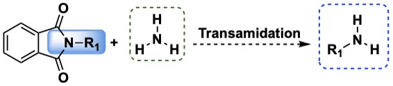 Phthaloyl group has been used in protection of primary amines, its cleavage uses strong reaction conditions and toxic materials. In that context transamidation is a useful alternative to cleave the phthaloyl group using soft reactions conditions.