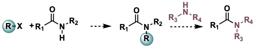 Amines, produced by a transamidation exchange, are usually discarded, or seen as residues. Our team works in the connection of transamidation reaction and cross-coupling reactions to synthesize complex primary amines.
