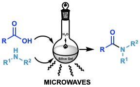 A highly improved and green methodology for the direct amidation of carboxylic acids with amines using silica gel as a solid support and catalyst was described. The scope of this method is exemplified using several aliphatic, aromatic, unsaturated and fatty acids. The reaction is also applied to different primary and secondary amines.